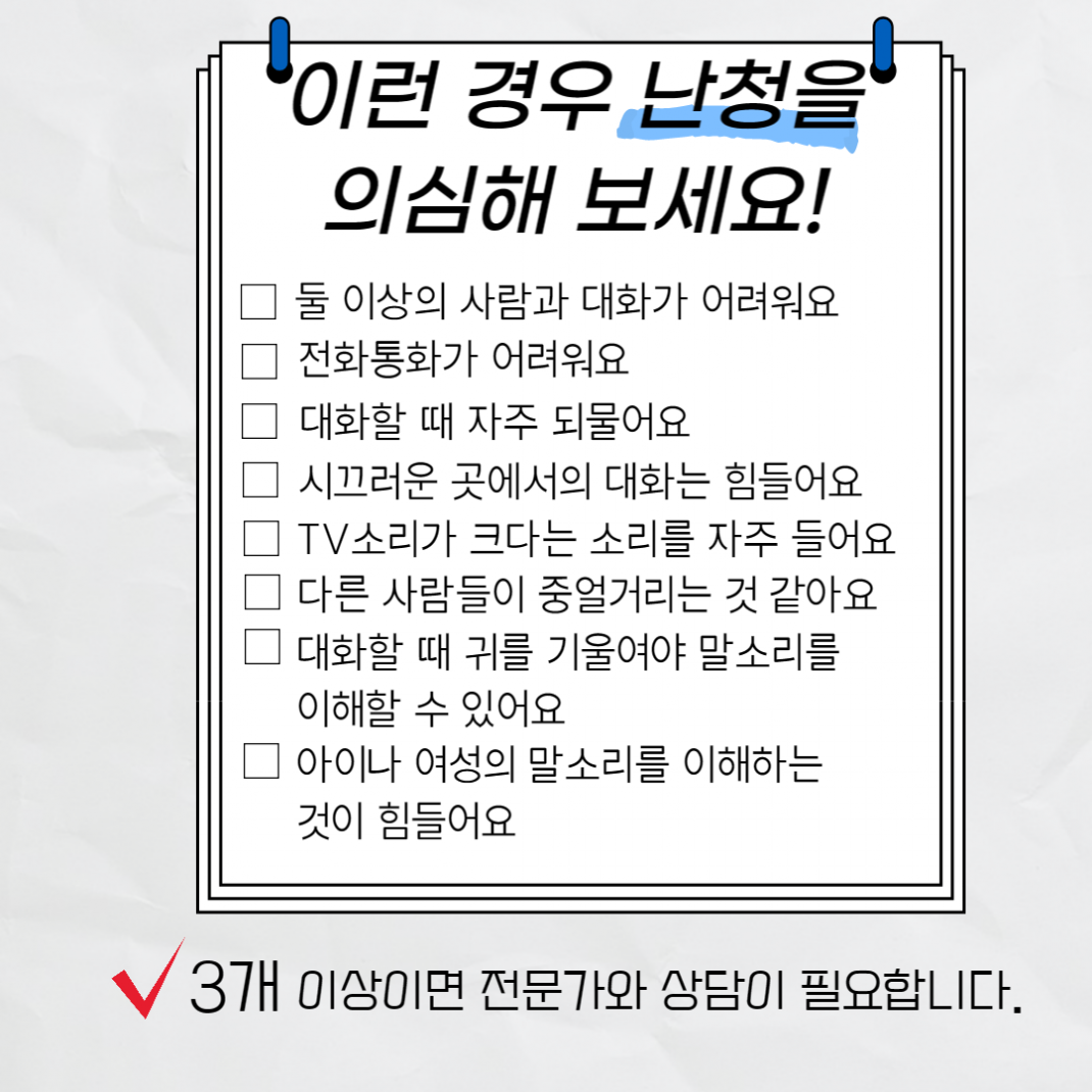 잘 들리지 않으신다면 정확한 청력검사로 상담받아보세요~